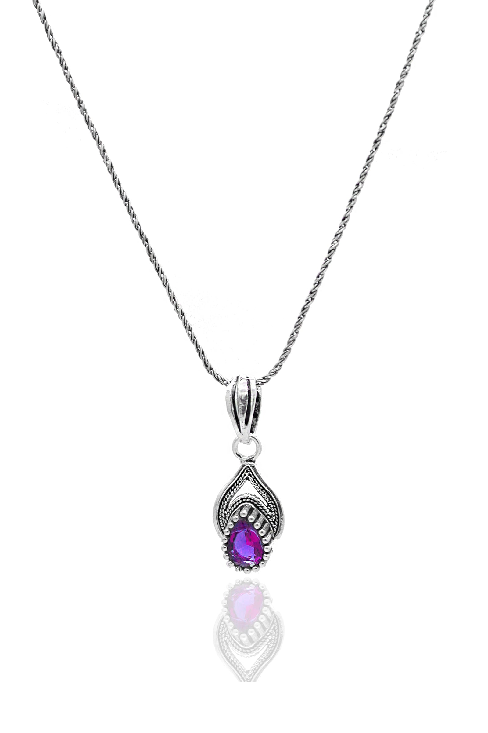 "Drop Model Authentic Filigree Silver Necklace With Amethyst Gemstone"