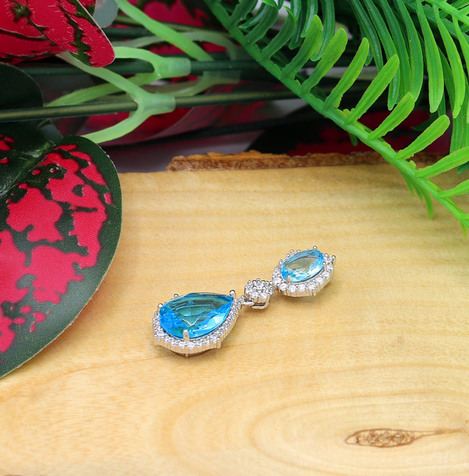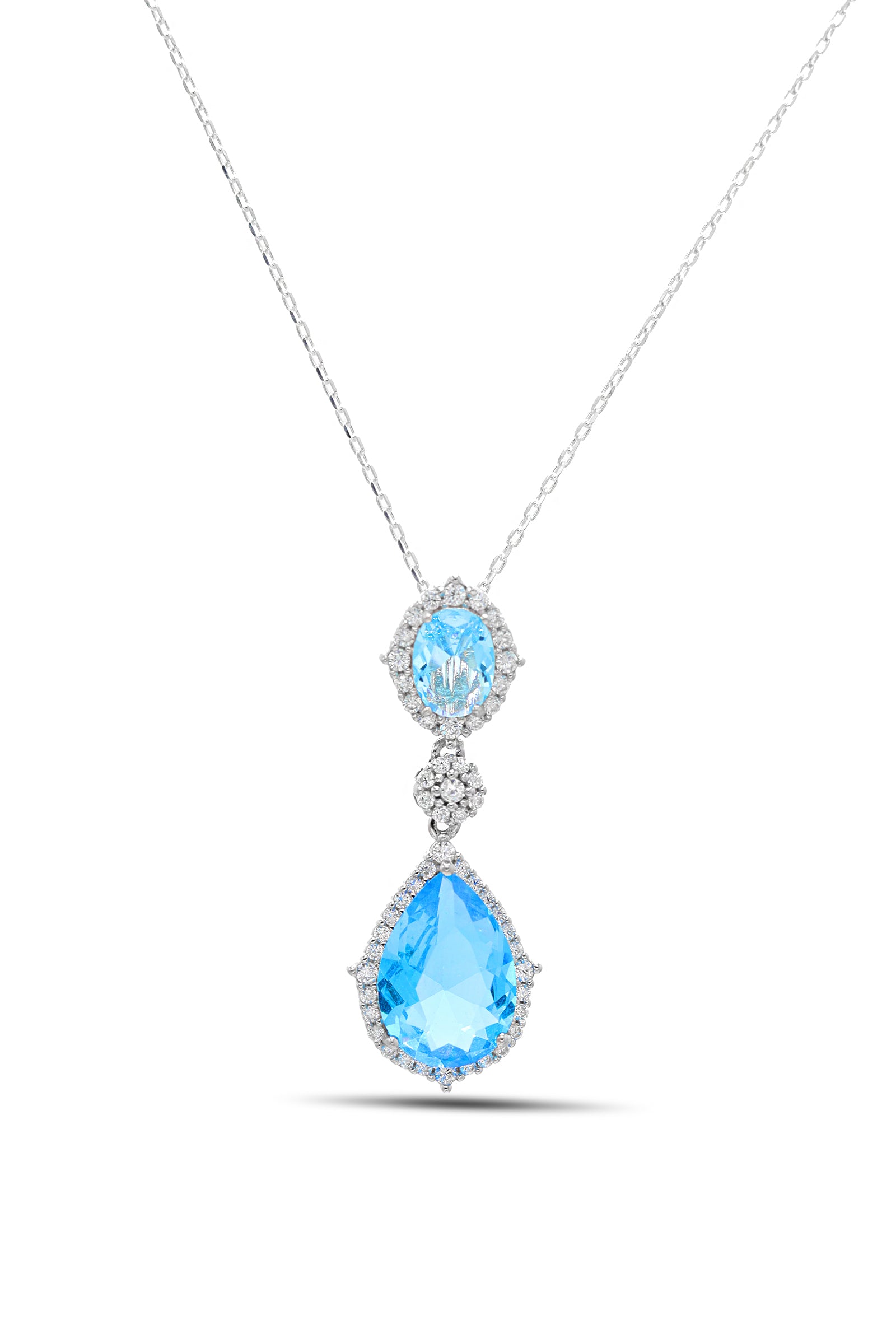 "Authentic Handmade Silver Necklace With Aquamarine and Zircon Gemstone"