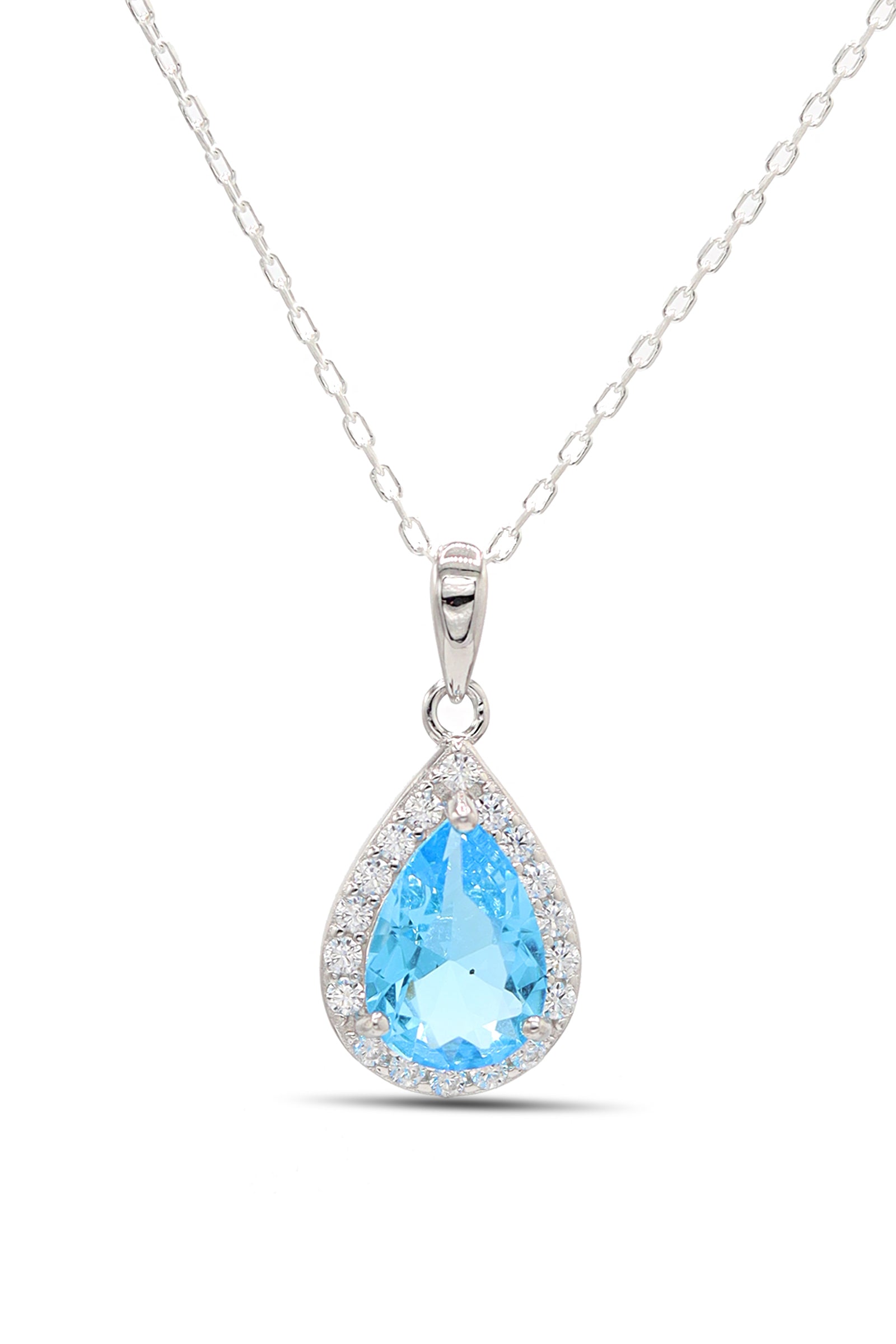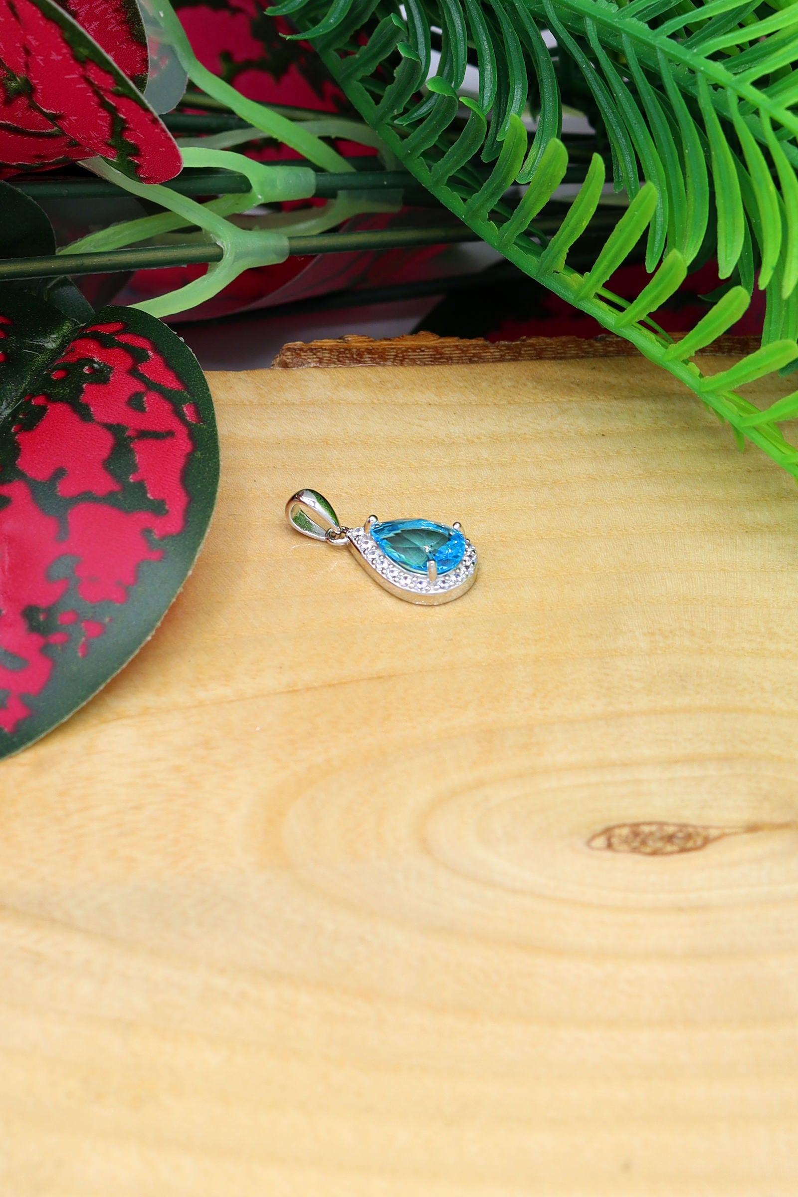 "Authentic Handmade Silver Necklace With Aquamarine and Zircon Gemstone"