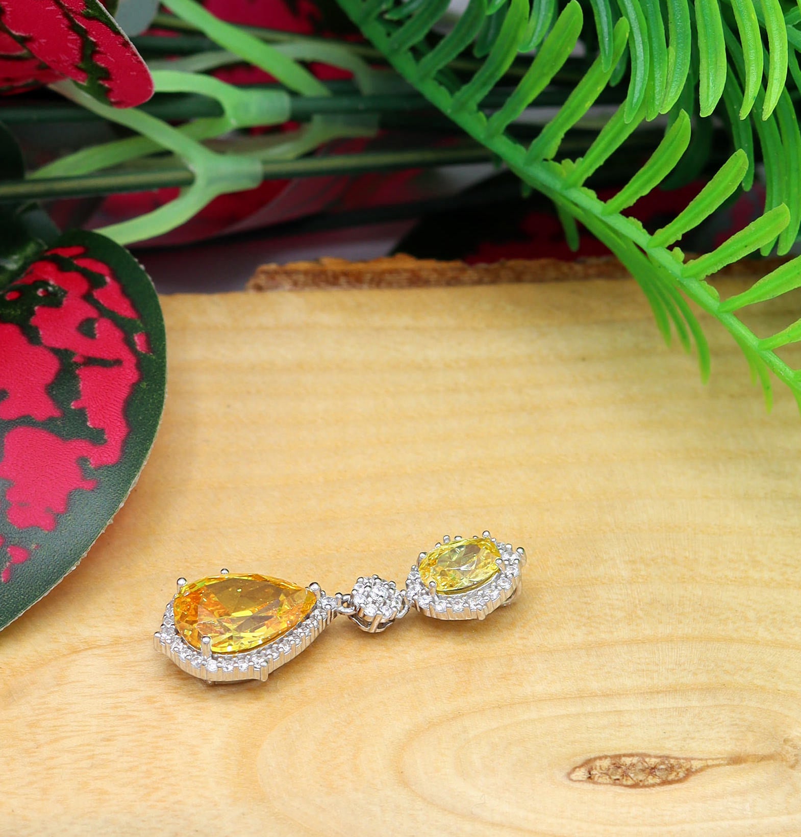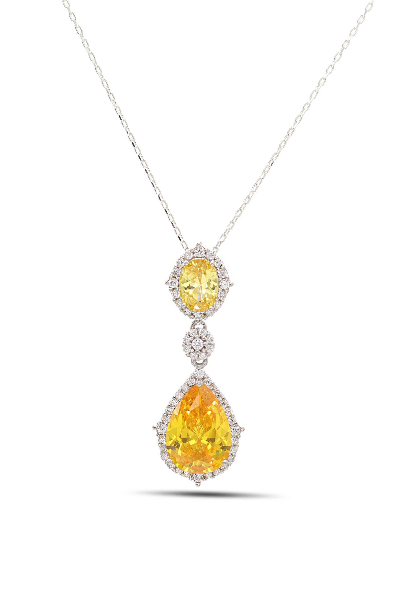 "Authentic Handmade Silver Necklace With Citrine and Zircon Gemstone"