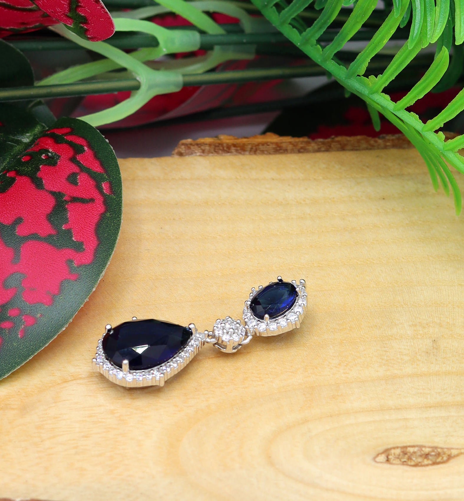 "Authentic Handmade Silver Necklace With Sapphire and Zircon Gemstone"
