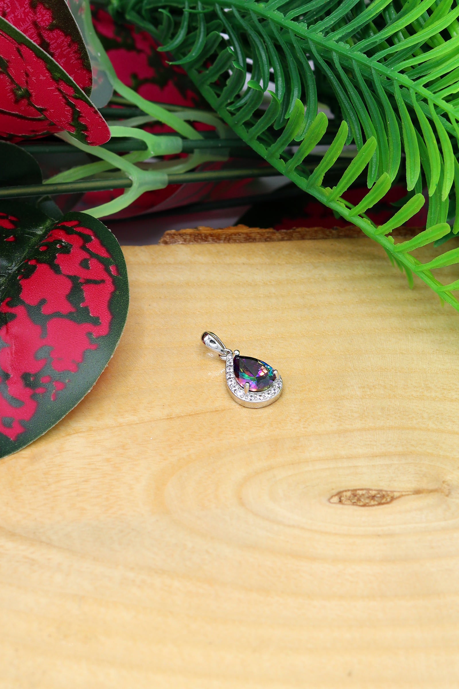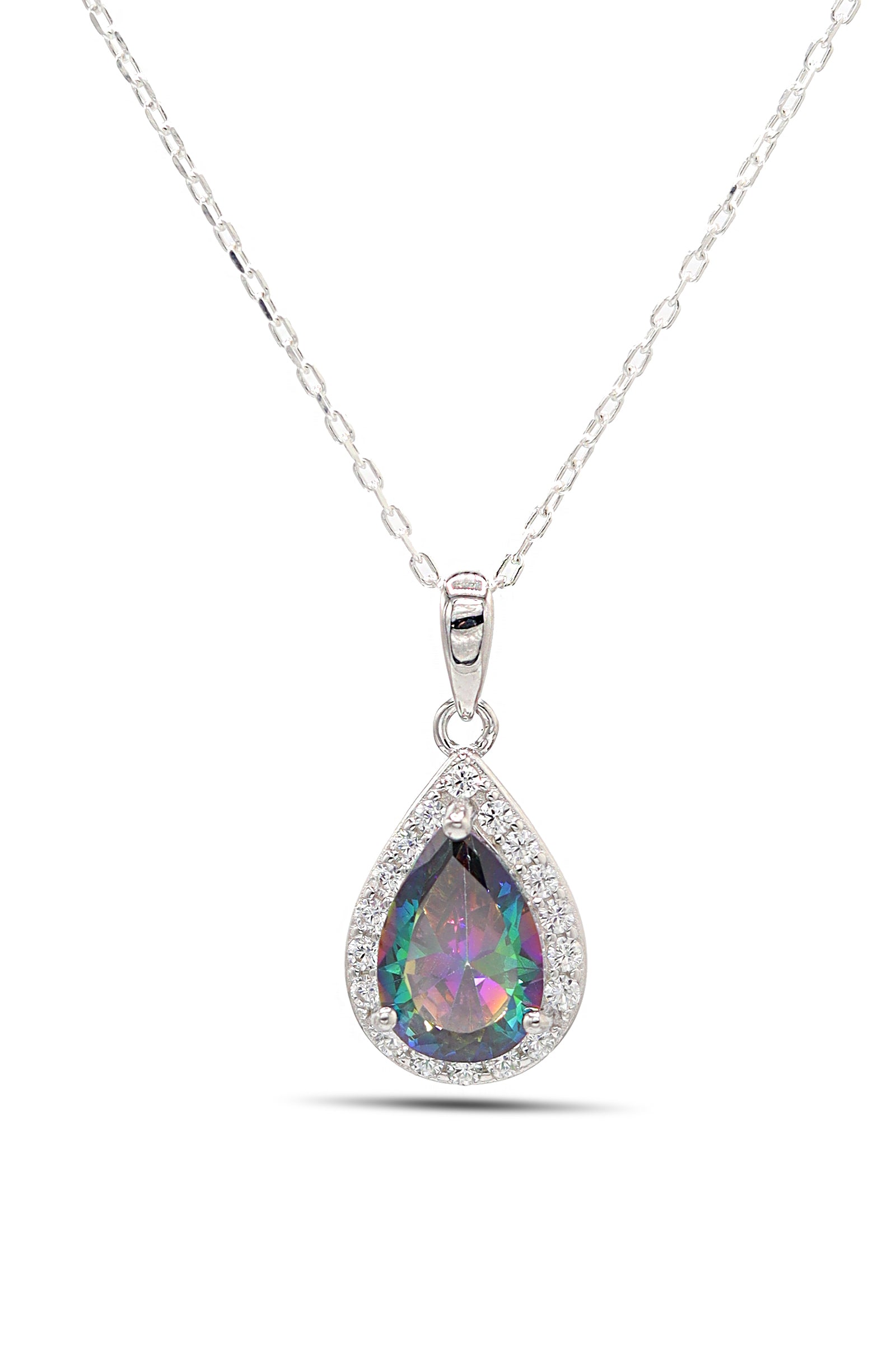 "Authentic Handmade Silver Necklace With Mystic Topaz and Zircon Gemstone"