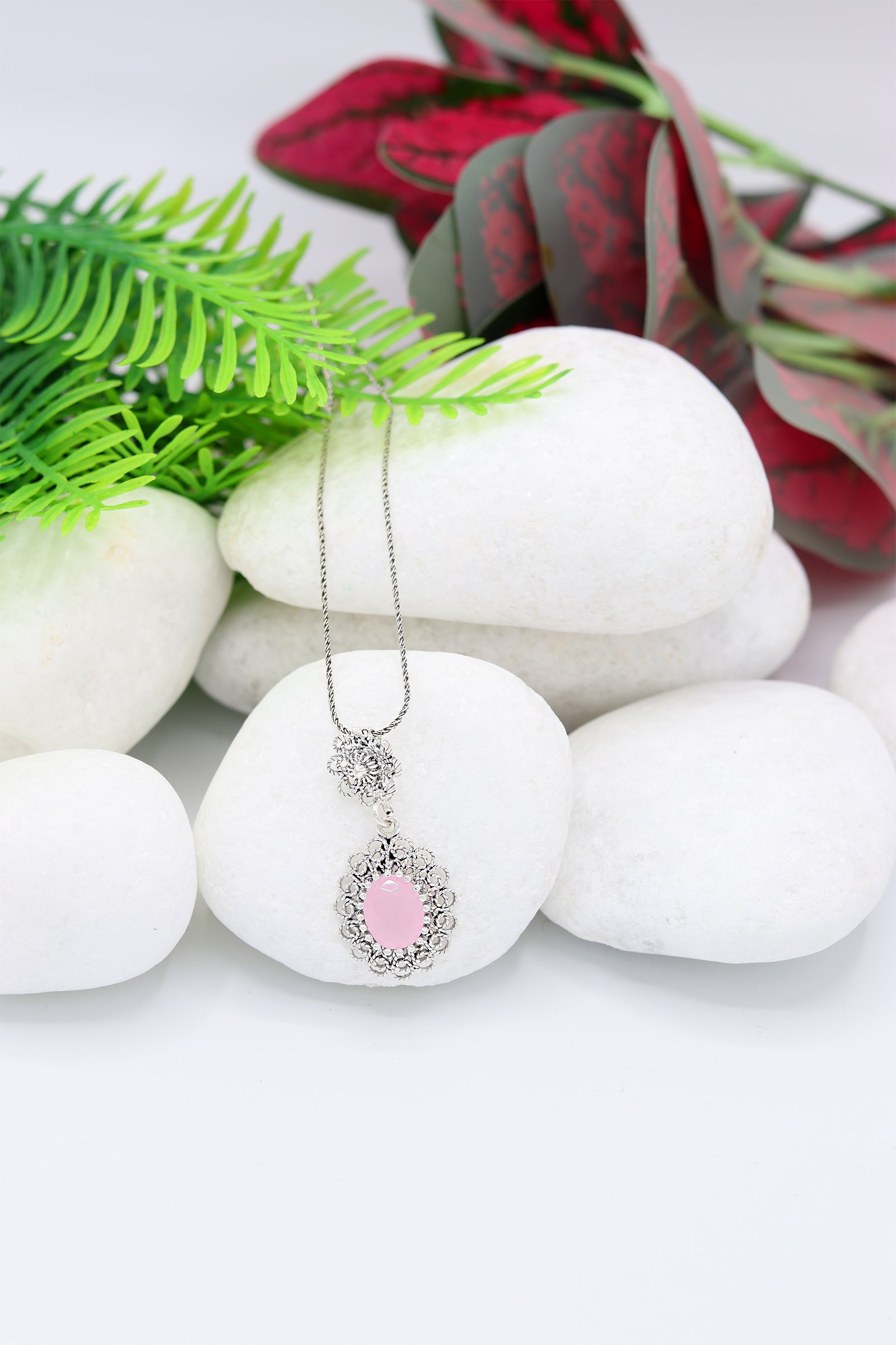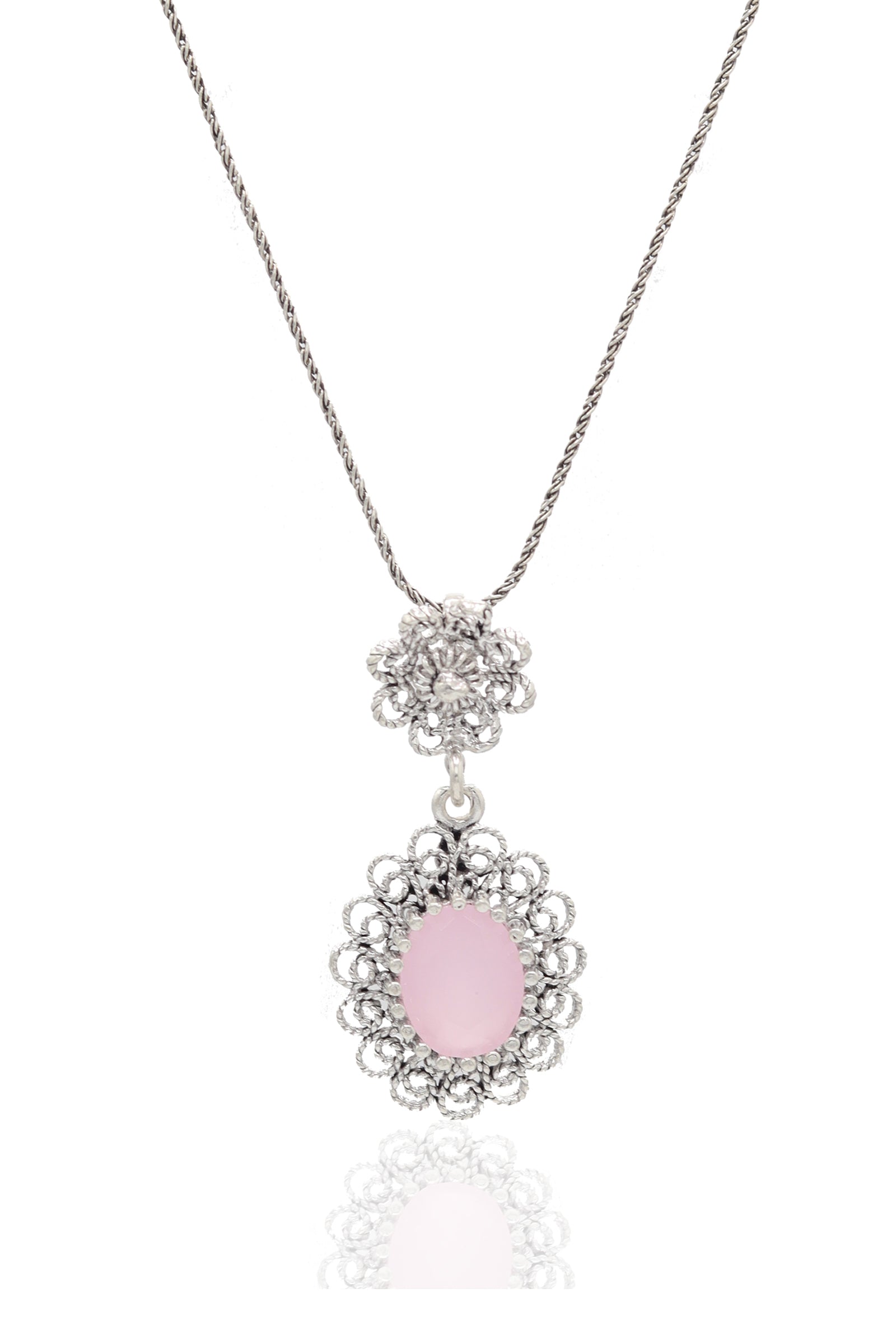 "Ellipse Model Authentic Filigree Silver Necklace With Quartz Gemstone"