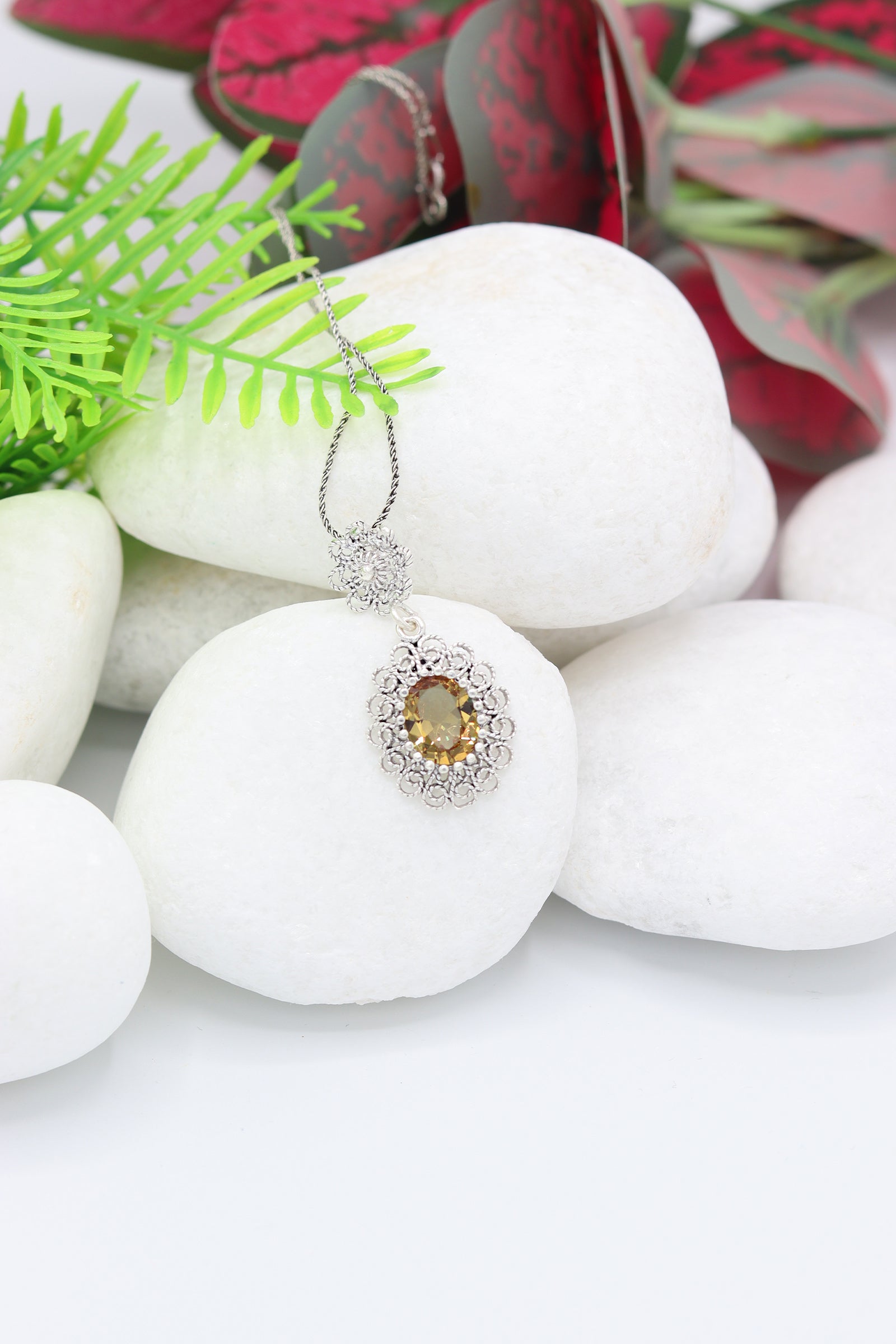 "Ellipse Model Authentic Filigree Silver Necklace With Zultanite Gemstone"