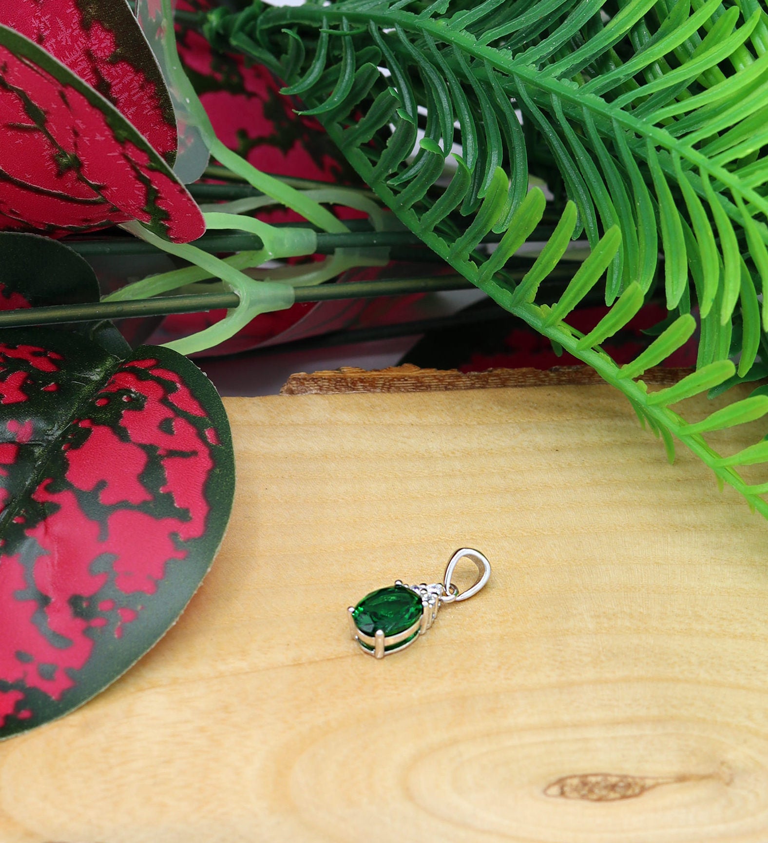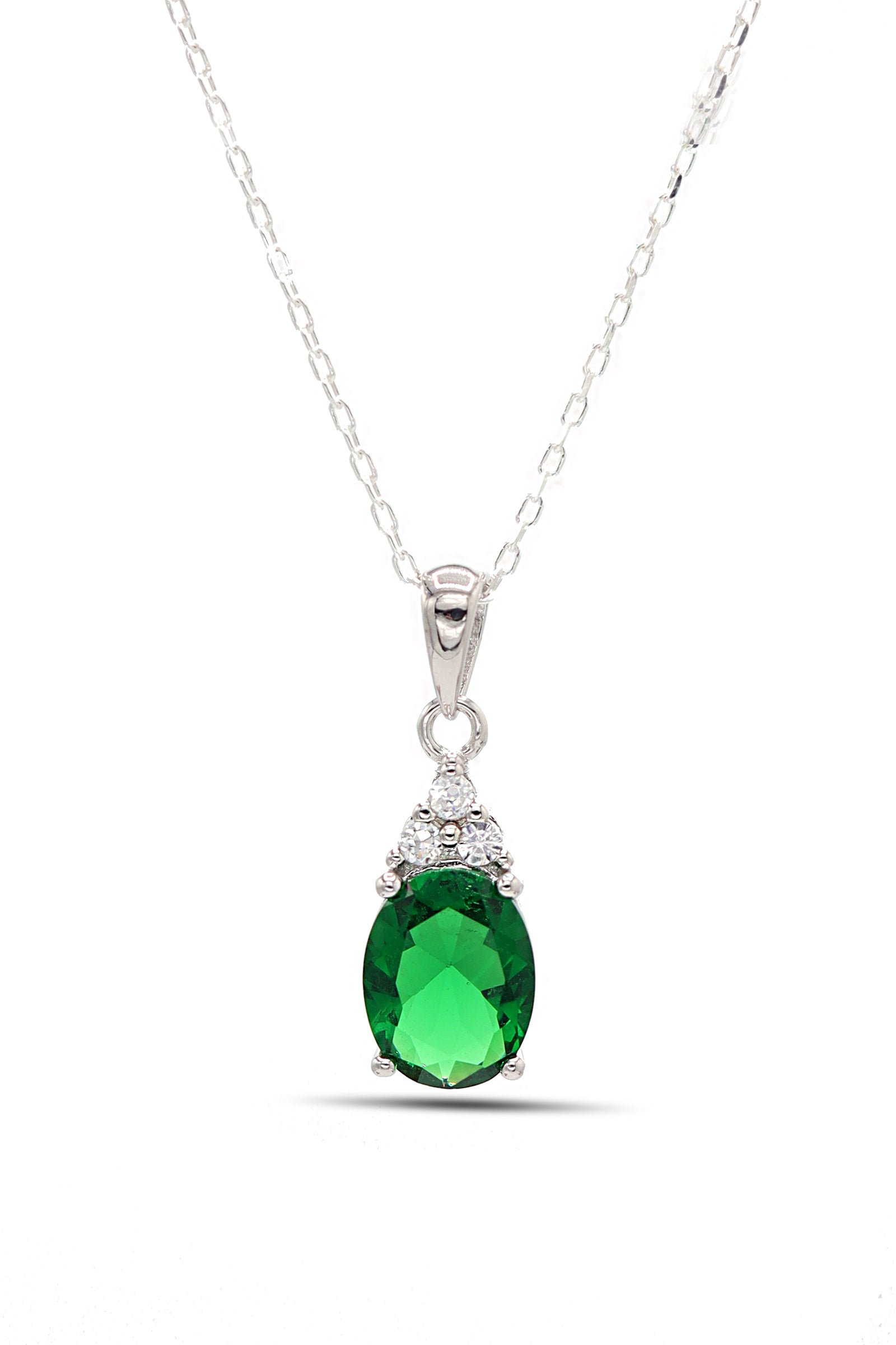 "Authentic Handmade Silver Necklace With Emerald and Zircon Gemstone"